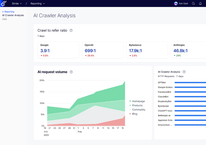 - Track crawl activity by AI model to see which engines are reading your site most often.