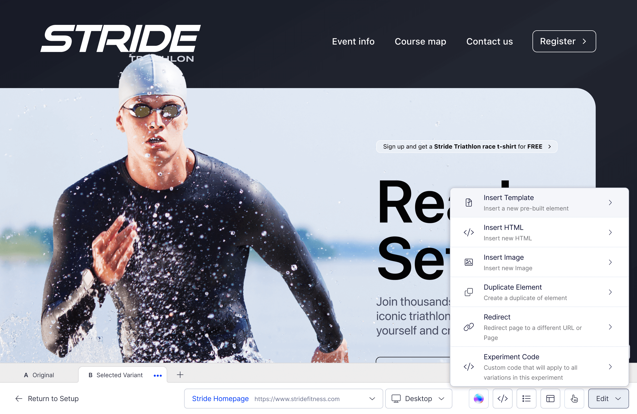 - CDN processing: Assign users to experiments and apply changes at the edge before your webb page even reaches your visitors