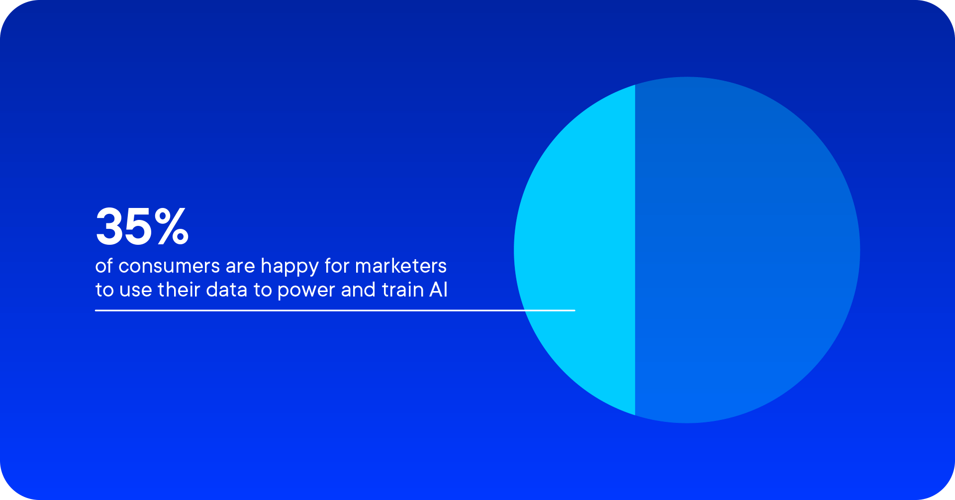 Mens noen forbrukere gjerne ser at merkevarer bruker kunstig intelligens hvis det forbedrer opplevelsen deres, er det bare en tredjedel som synes det er greit at markedsførere bruker dataene deres til å drive og trene opp kunstig intelligens.