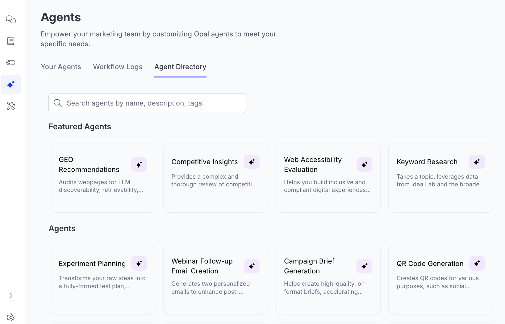 Provides Opal admins with a detailedhistory of who created or updated anagent (and when), as well as the ability torestore a previous version.​