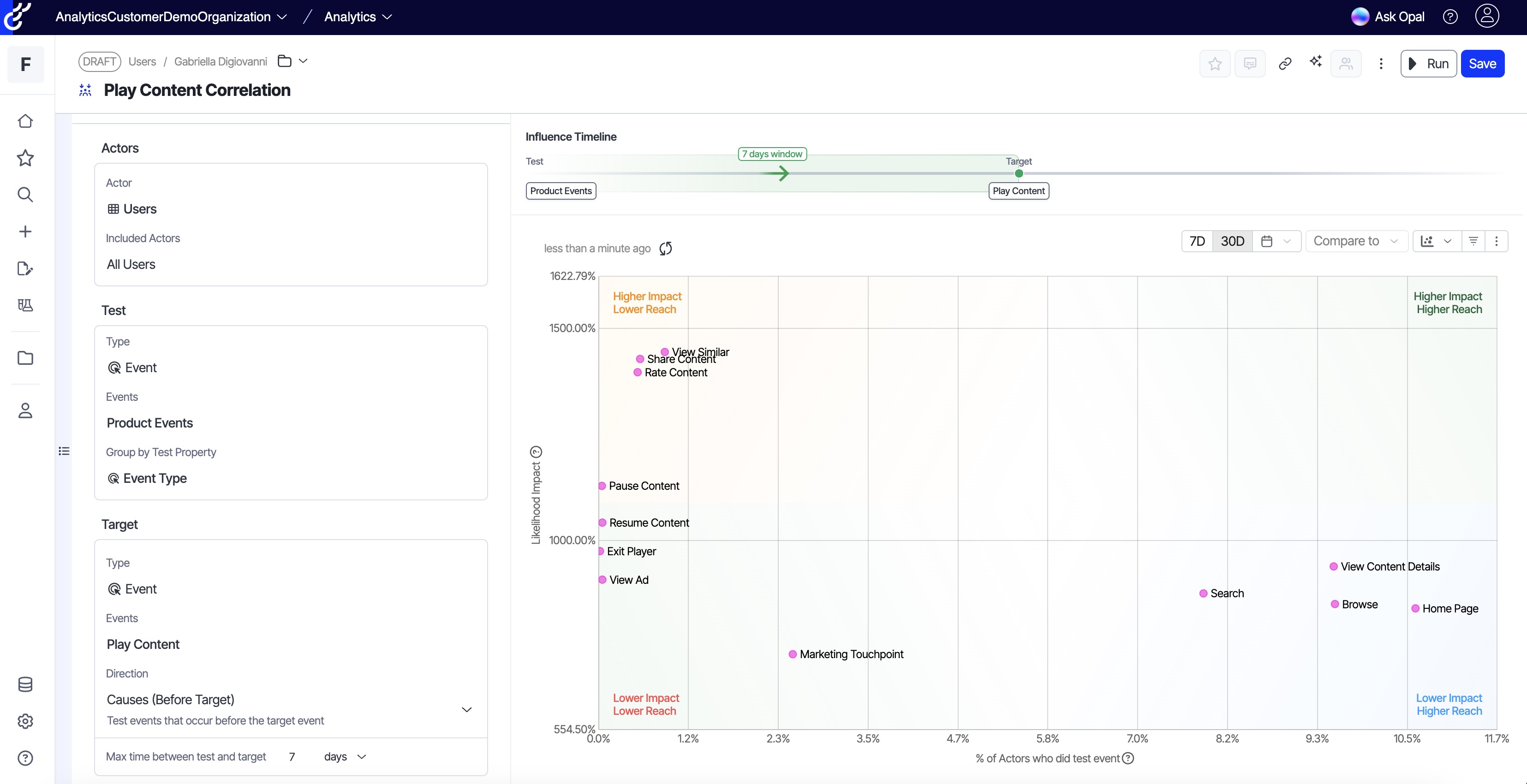 Opal builds path and influence explorations from chat to show which behaviors drive business outcomes.
