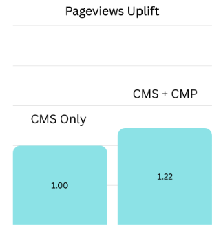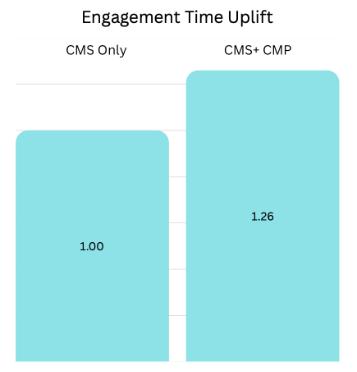 Page-view and engagement-time uplifts were calculated by comparing customers using CMS only with those using both CMS and CMP.